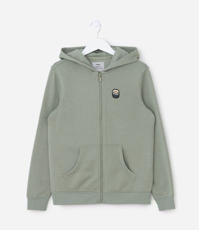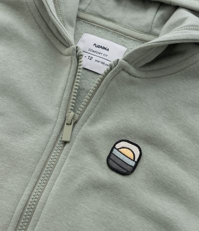 Ref: Jaqueta infantil confeccionada em moletom, com capuz e bolso canguru. Possui patch aplicado no peito e fechamento frontal por zíper.