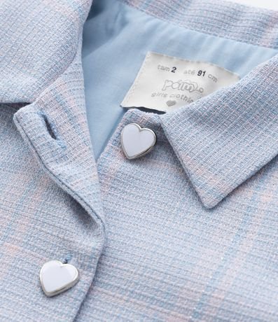 Ref: Jaqueta infantil confeccionada em tweed, com gola colarinho, mangas longas e bolsinhos com lapela. Peça possui fechamento por botões em formato de coração que dão delicadeza ao item.