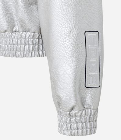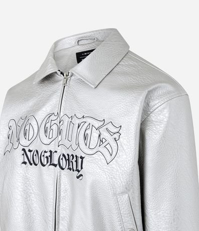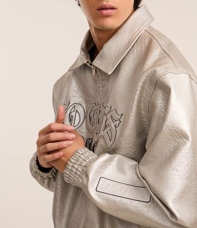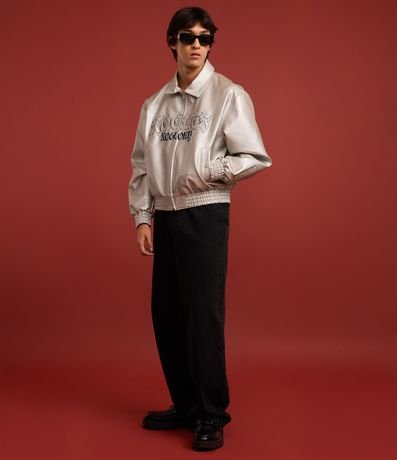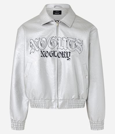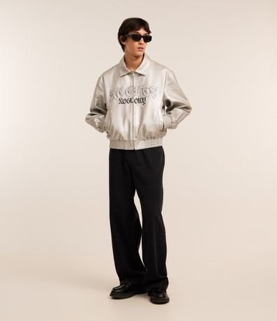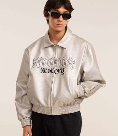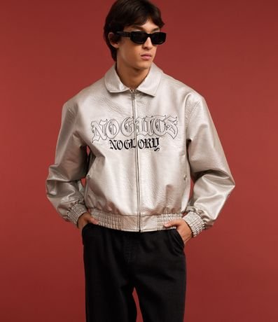 Ref: Jaqueta masculina metalizada, com gola lapela, manga longa ajustada. Fechamento por zíper com bordado lettering frontal, ajuste na barra com elástico e bolso.