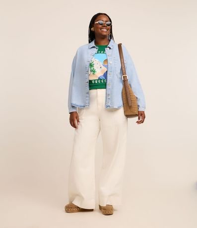 Jaqueta Overshirt em Jeans com Bolso Frontal Curve & Plus Size