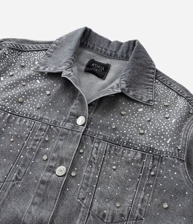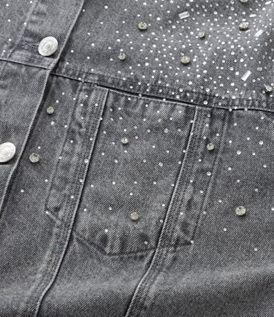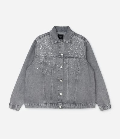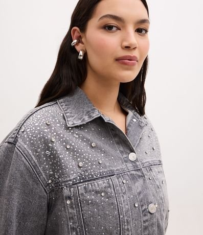 Ref: Jaqueta feminina confeccionada em jeans mais sustentável, no modelo oversized. Possui efeito estonado, com aplicação de brilhos e pedras na parte frontal que trazem modernidade ao visual. Possui modelagem ampla, fechamento por botões niquelados e acabamento clássico. Ideal para composições estilosas com toque urbano e atual.