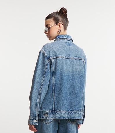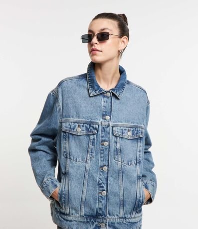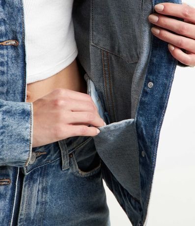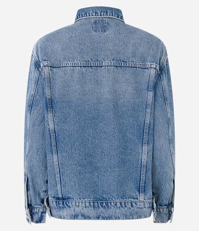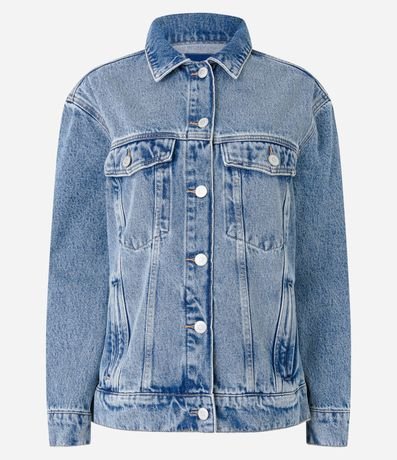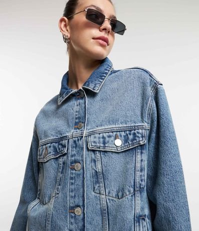 Ref: Jaqueta alongada confeccionada em jeans com colarinho na gola, mangas longas e bolsos no peito e internos. Os bolsos localizados na parte do peito possuem lapelas com botões e, além disso, esta jaqueta conta também com recortes verticais na parte frontal.