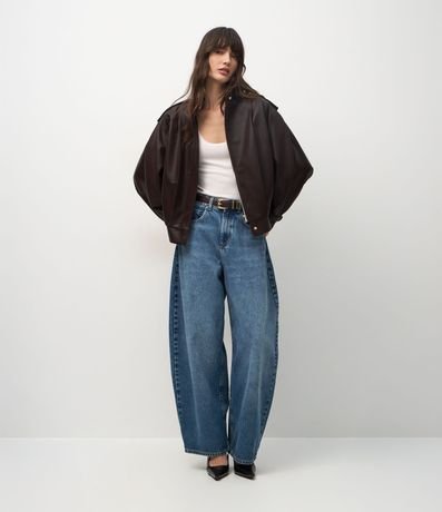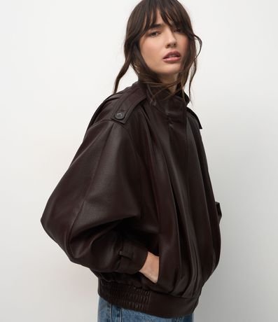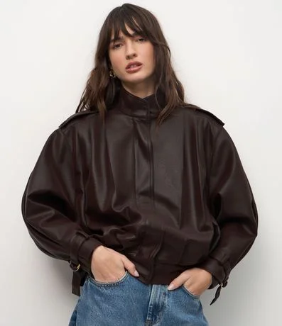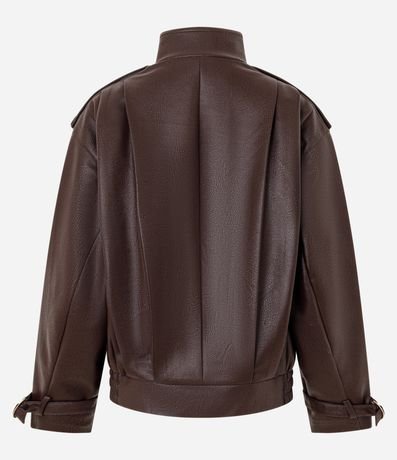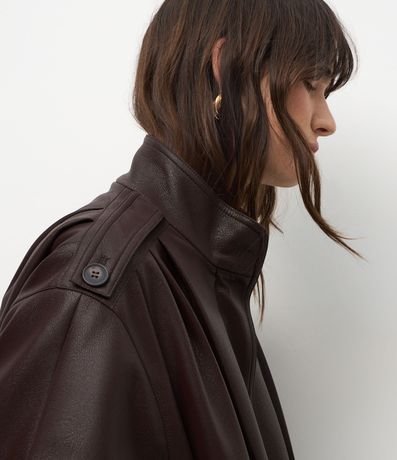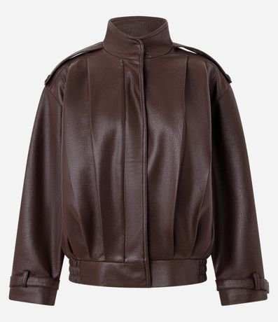 Jaqueta Oversized em PU com Pregas Marcadas e Fivelas no Punho