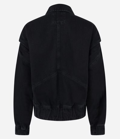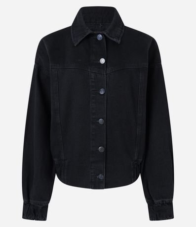 Ref: Jaqueta feminina confeccionada em jeans mais sustentável, gola colarinho com abotoamento frontal, manga longa ajustada com detalhe em recortes.