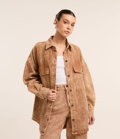 Ref: Jaqueta oversized confeccionada em jeans com algodão bci e boas práticas ambientais. Possui abotoamento frontal e bolsos grandes com lapela.