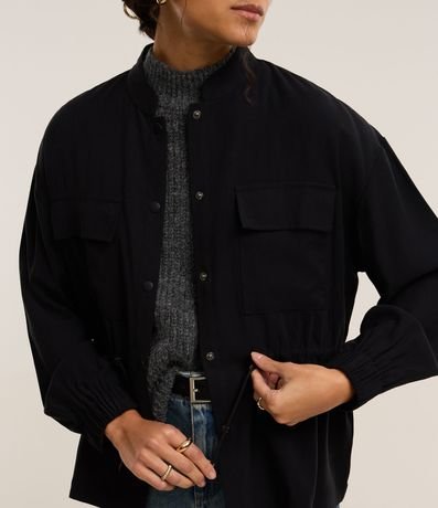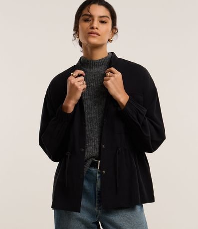 Ref: Jaqueta parka feminina confeccionada em viscose mais responsável, com gola alta e mangas largas de cava deslocada. Sem estampa, possui bolsos frontais com lapela, tencel ajustados com elástico na cintura e fechamento frontal com botões.