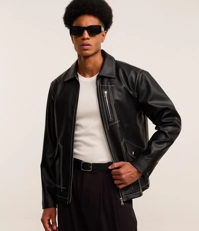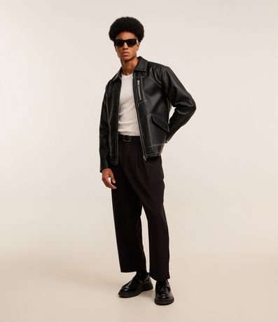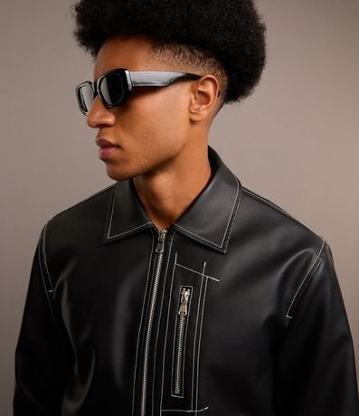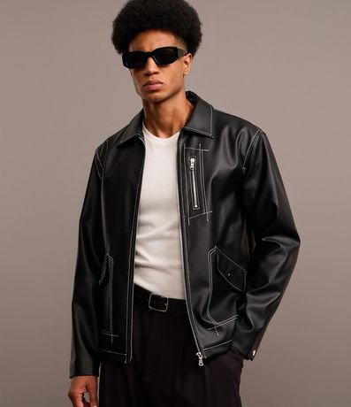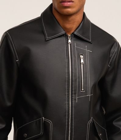 Ref: Jaqueta masculina confeccionada em material sintético. Peça com gola colarinho, fechamento por zíper, mangas longas, punhos com abotoamento, bolsos com fechamento em zíper no peito, bolsos cargos assimétricos e costura contrastante.
