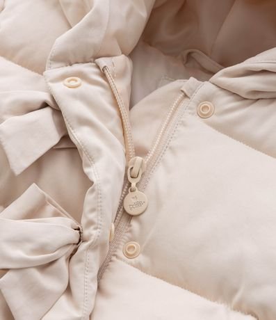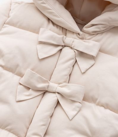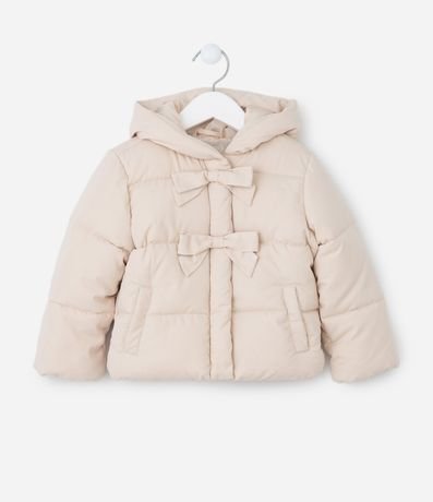 Ref: Jaqueta acolchoada de inverno para meninas, sem estampa. Este casaco tem capuz, fechamento por zíper, vista oculta, aplicação de lacinhos e bolsos frontais. Fofa e super quentinha!