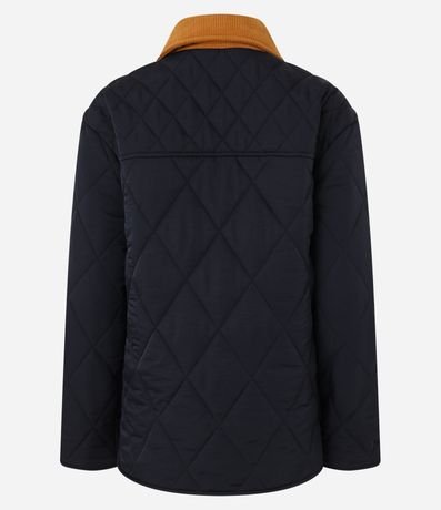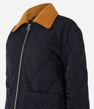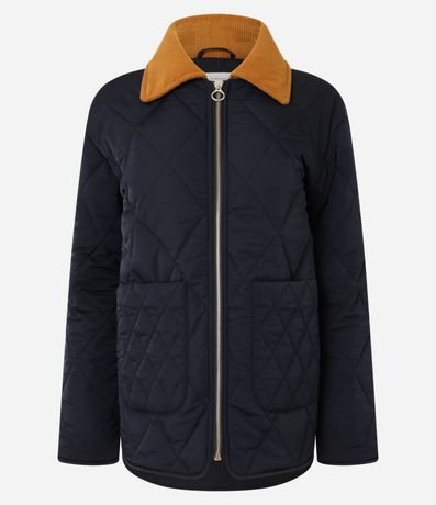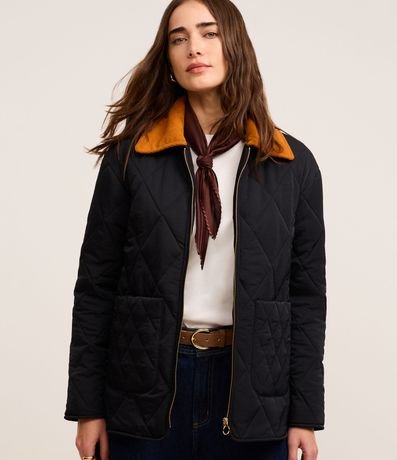 Ref: Jaqueta feminina alongada, modelo puffer, com textura acolchoada e gola contrastante em veludo. Possui 02 bolsos grandes frontais e fechamento por zíper.