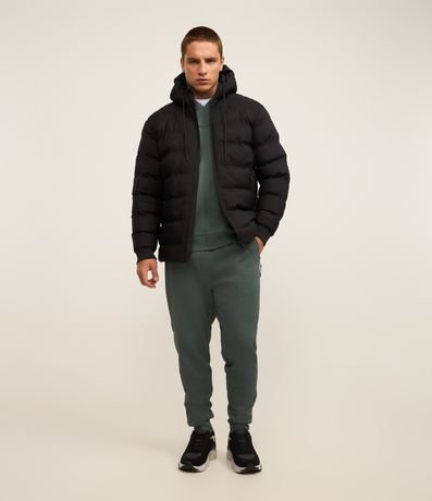 Jaqueta Puffer Esportiva sem Costura com Capuz