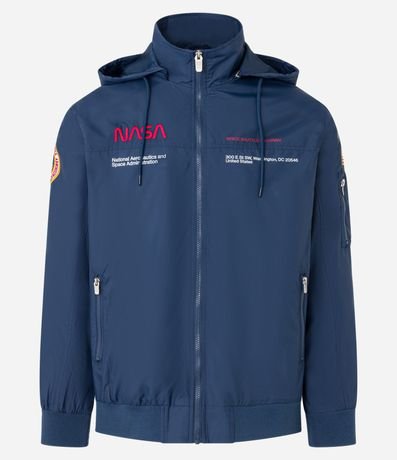 Jaqueta Quebra-Vento com Capuz e Estampa Nasa