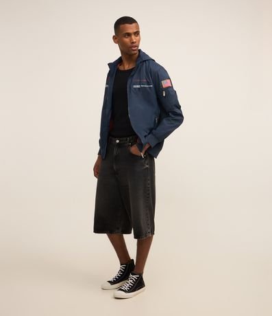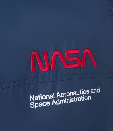 Jaqueta quebra-vento, confeccionada em tecido tecnológico com bolsos de zíper e estampa frontal NASA. Peça com forro estampado contrastante, dando um toque especial ao modelo.