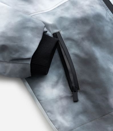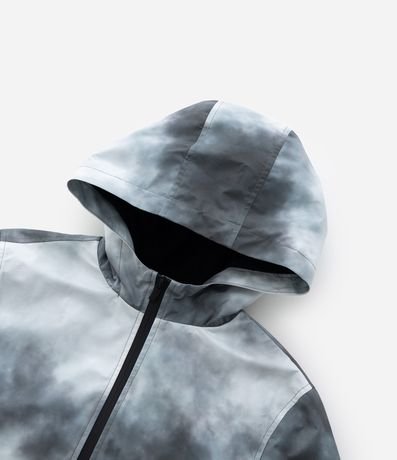 Ref: Jaqueta infantil de modelo quebra vento impermeável, confeccionada em microfibra. Possui capuz na gola, mangas longas, fechamento por zíper, bolsos e efeito tie dye, que traz aspecto manchadinho.