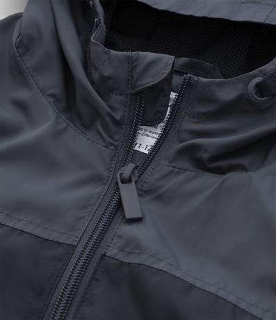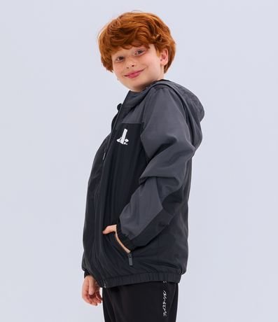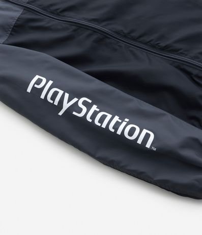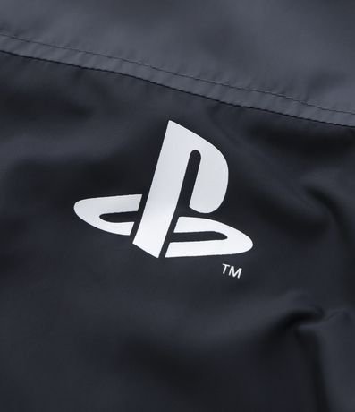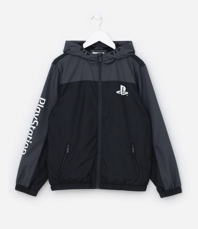 Ref: Jaqueta infantil, quebra vento, com capuz, bolsos com zíper e estampas mangas e no peito Playstation.