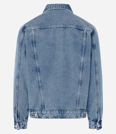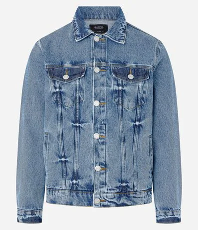 Ref: Jaqueta masculina, estonada, abotoamento frontal, bolsos com lapela nos bolsos, efeito estonada e confeccionada em jeans.