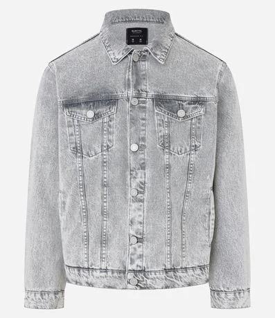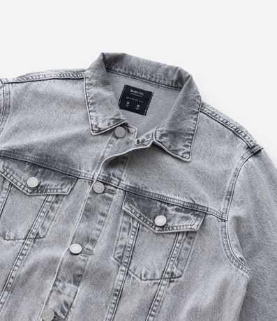 Ref: Jaqueta masculina, estonada, abotoamento frontal, bolsos com lapela nos bolsos, efeito estonada e confeccionada em jeans.