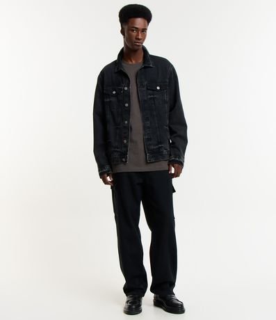 Ref: Jaqueta masculina, estonada, abotoamento frontal, bolsos com lapela nos bolsos, efeito estonada e confeccionada em jeans.