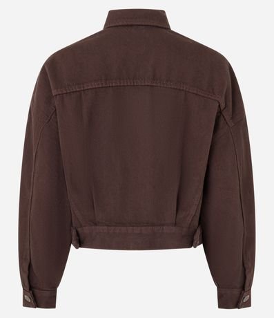 Jaqueta Regular em Sarja com Bolsos e Pregas na Barra
