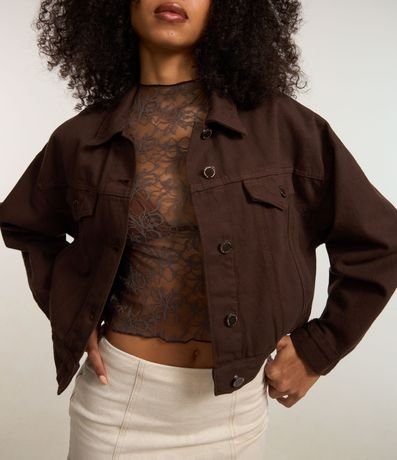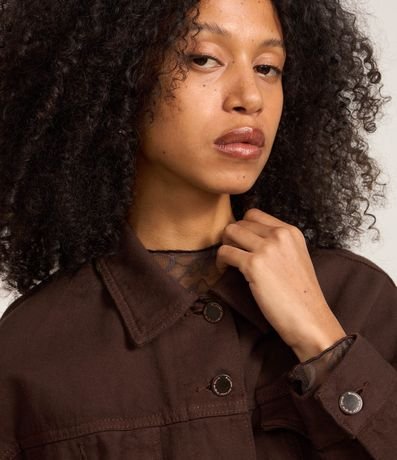 Jaqueta regular confeccionada em sarja com algodão bci e produzida em boas práticas ambientais. Possui abotoamento frontal, dois bolsinhos no peito com lapela e botões, recortes e pregas na barra.