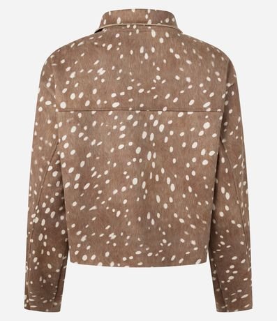Ref: Jaqueta feminina confeccionada em suede de poliéster, com padronagem animal print estilo bambi em estampa fullprint, trazendo visual marcante e contemporâneo. O modelo apresenta manga longa, gola com colarinho clássico e fechamento frontal por zíper metálico. Possui bolsos frontais falsos com lapela, que reforçam o design utilitário sem adicionar volume, além de recortes estruturados que valorizam o caimento. Ideal para composições fashion urbanas com personalidade.