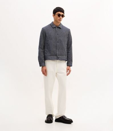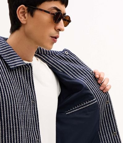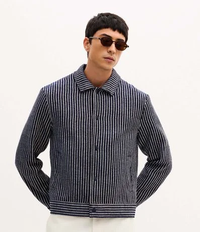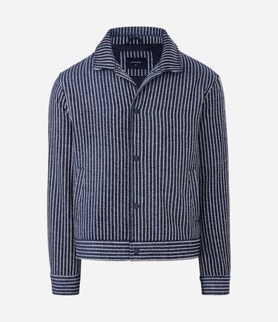 Ref: Jaqueta masculina, confeccionada em poliéster com gola colarinho, abotoamento frontal e manga longa. Peça com textura jacquard.