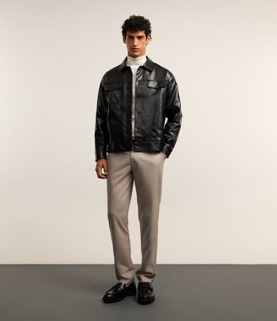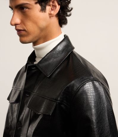Ref: Jaqueta masculina confeccionada em material sintético, modelo trucker possui gola colarinho, detalhes em lapela, fechamento em botões frontais e textura croco. Suas mangas possuem ajuste por botões e tiras com botões nas laterais.