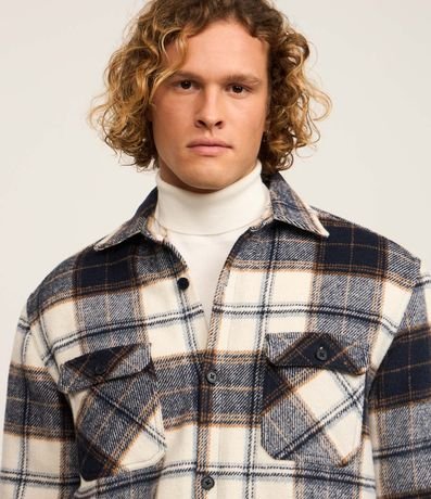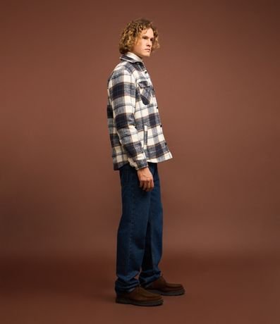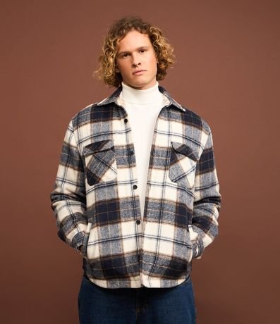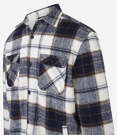 Ref: Jaqueta masculina confeccionada com poliéster mais sustentável, em flanela com gola colarinho, abotoamento frontal, bolsos com lapela, bolsos laterais. Peça com estampa xadrez e sherpa interna sendo mais quentinha nos dias mais frios.