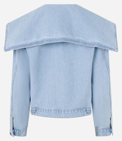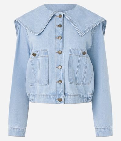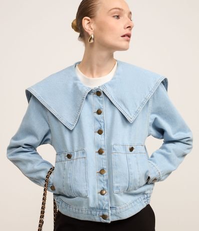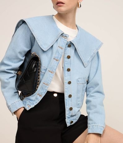 Ref: Jaqueta trucker com gola marinheiro, fechamento por botões frontais, confeccionada em material mais sustentável e bolsos com botões.