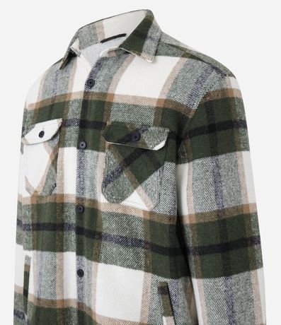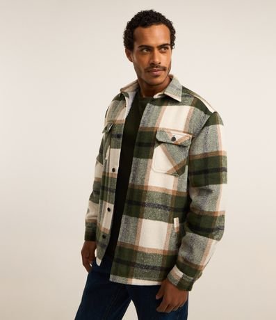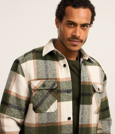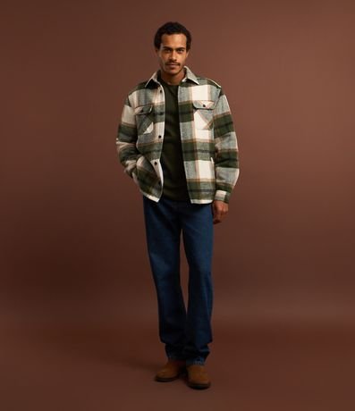 Ref: Jaqueta masculina confeccionada em veludo, no modelo trucker, gola colarinho, abotoamento frontal. Peça no modelo trucker com estampa xadrez e bolsos variados.