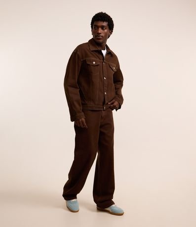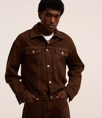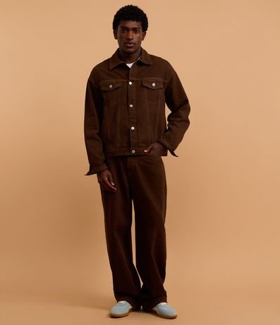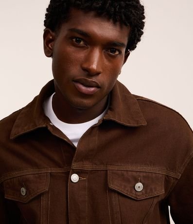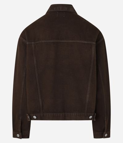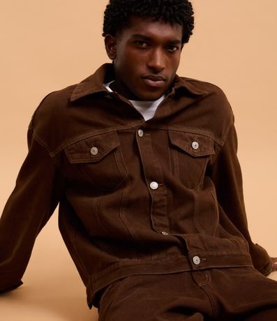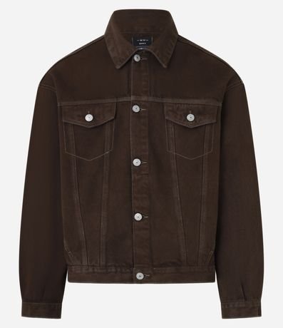 Ref: Jaqueta trucker, oversized com manga longa, confeccionada em sarja com algodão bci mais sustentável, abotoamento frontal e bolsos com lapela e botão.