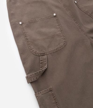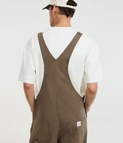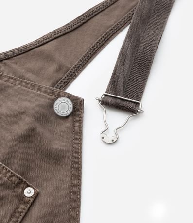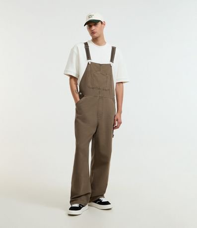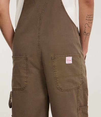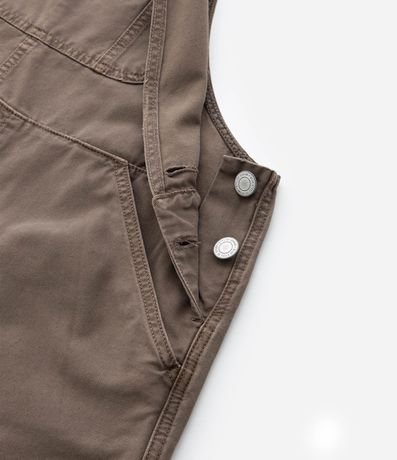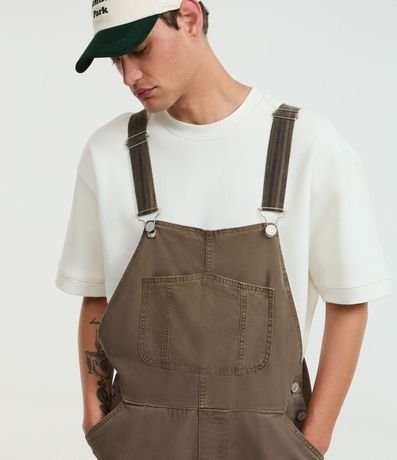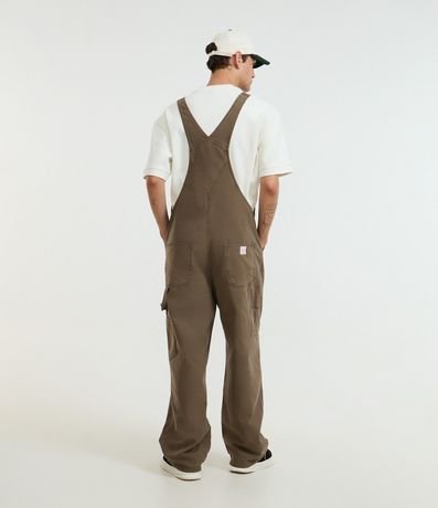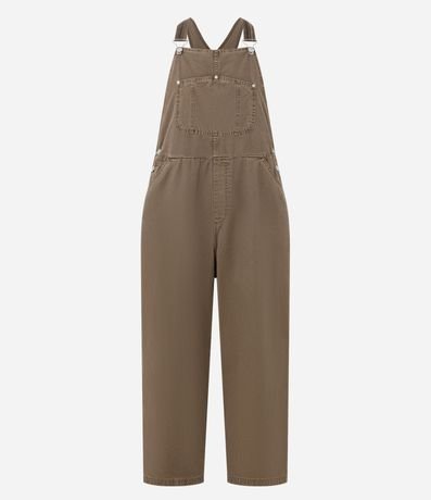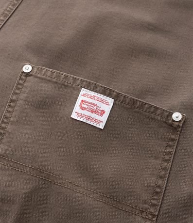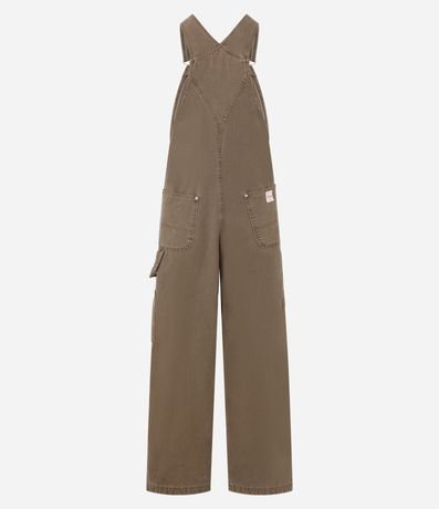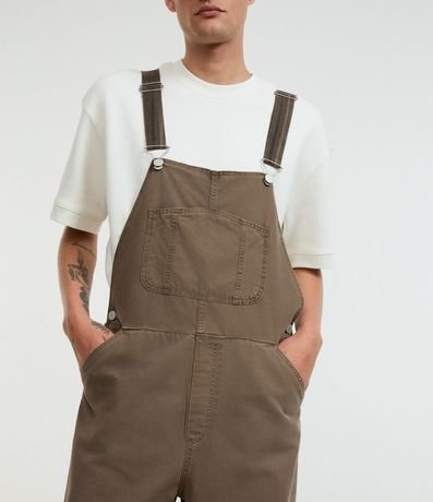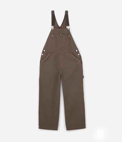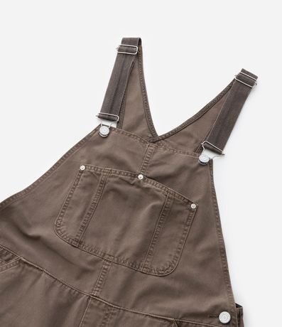 Ref: Jardineira de sarja confeccionada a partir de algodão BCI. A peça tem alças largas, bolso carpinteiro e bolsos nas pernas.