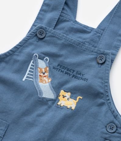 Jardineira Infantil com Bordado Bichinhos no Parquinho - Tam 3 a 18 meses