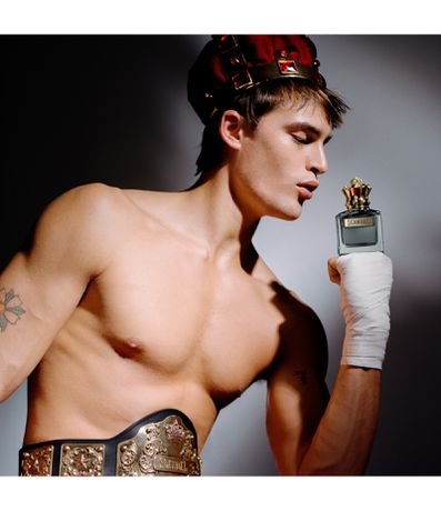 SCANDAL POUR HOMME de Jean Paul Gaultier dá um golpe certeiro com seu energizante e viciante eau de toilette. O rei dos ringues seduz seus fãs com a virilidade contrastante de um amadeirado oriental sensual, que dá um nocaute em todos. Vamos ao show!