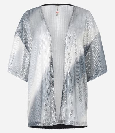 Ref: Kimono alongado com manga curta, confeccionado em paetê em efeito degradê e abertura total na parte da frente.