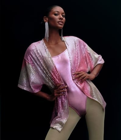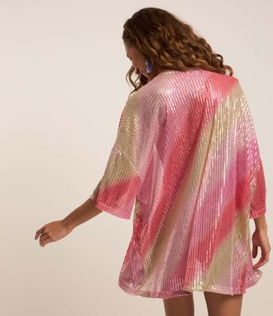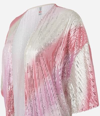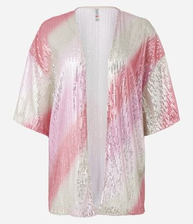 Ref: Kimono alongado com manga curta, confeccionado em paetê em efeito degradê e abertura total na parte da frente.