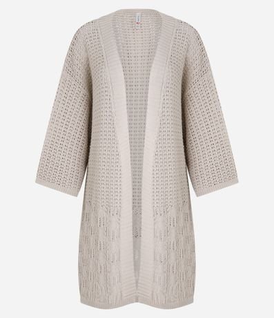 Ref: Kimono feminino confeccionado em tricô com textura de mix de pontos, de modelo alongado e sem fechamento.