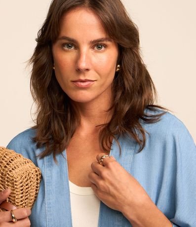 Ref: Kimono em liocel com abertura total e detalhes pespontados.