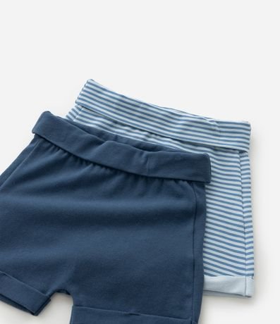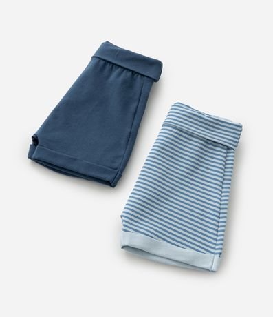 Ref: Kit com 02 bermudinhas infantis confeccionadas em cotton mais sustentável através de boas práticas ambientais. Cós dobrado, sendo 01 peça com estampa de listras 01 peça sem estampa.
