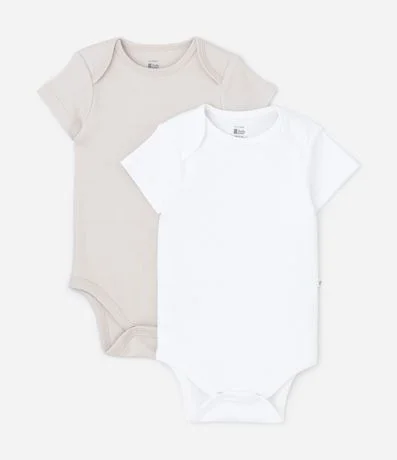 Ref: Kit com 02 bodies infantis, em suedine, manga curta e golinha americana, sem estampa e com otões para fechamento no entrepernas.