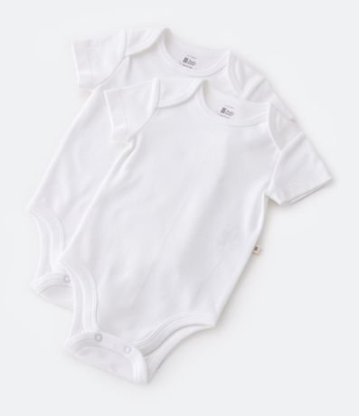 Ref: Kit com 02 bodies infantis, em suedine, manga curta e golinha americana, sem estampa e com otões para fechamento no entrepernas.