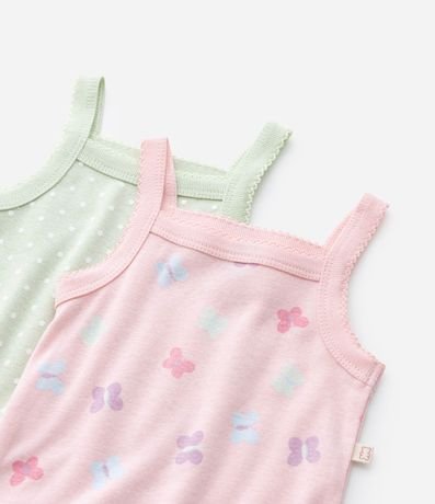 Ref: Kit com 02 bodies infantis confeccionados em algodão mais sustentável, alças médias, fechamento no entrepernas e estampa de borboletas e poá.
