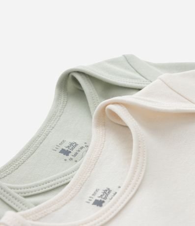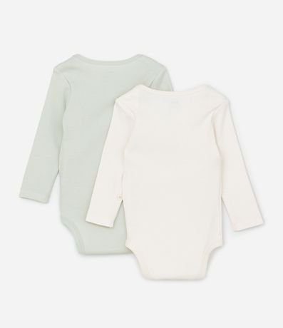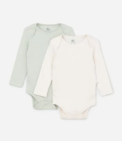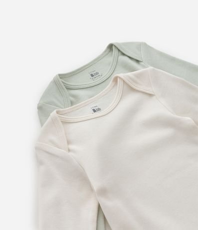 Ref: Kit com 02 bodies infantis confeccionado em suedine mais sustentável, gola americana, manga longa, fechamento no entrepernas, básicos sem estampa.
