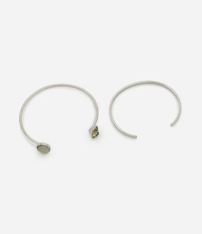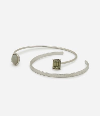 Kit 02 braceletes femininos no modelo rígido com abertura, sendo um liso e um com detalhe de pedraria nas ponteiras.