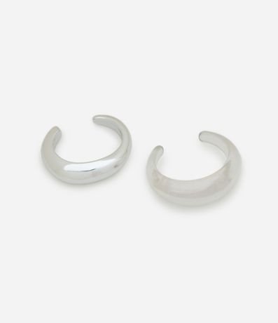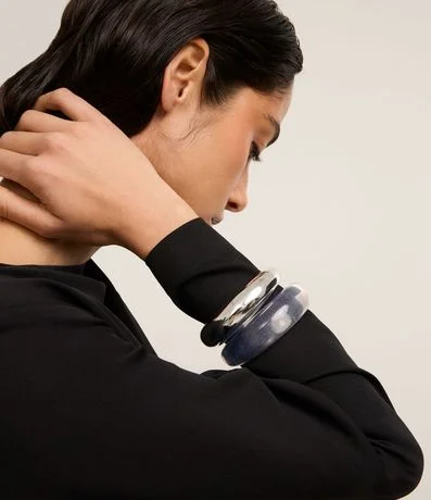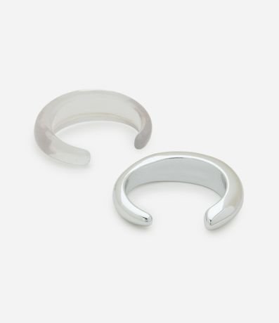 Kit de braceletes rígidos abertos com forma orgânica, sendo um bold liso e um em resina transparente.
