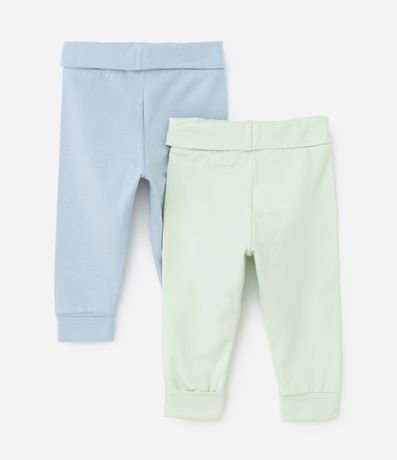Ref: Kit com 02 calças infantis confeccionadas em cotton de material e processo mais sustentável. Possui cós dobrado e não tem estampa.