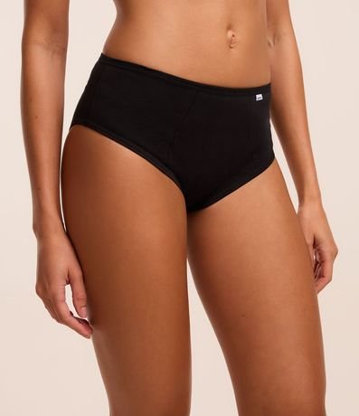 Kit com 02 calcinhas altas femininas, confeccionadas em algodão, com lateral larga e superfície sem estampa.