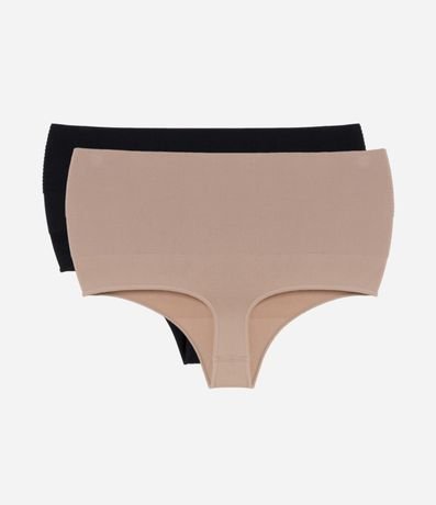 Ref: Kit com duas calcinhas altas confeccionadas em microfibra sem estampa.