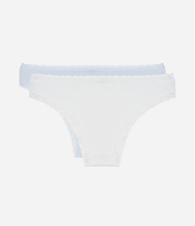 Ref: Kit com duas calcinhas de algodão com detalhe de renda no cós e nas cavas.