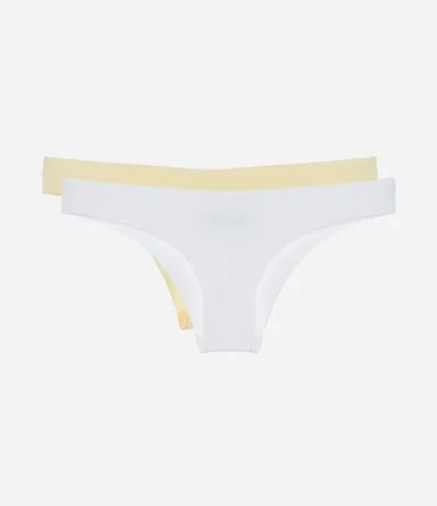 Ref: Kit com duas calcinhas biquíni confeccionadas em microfibra sem estampa e com corte a fio.