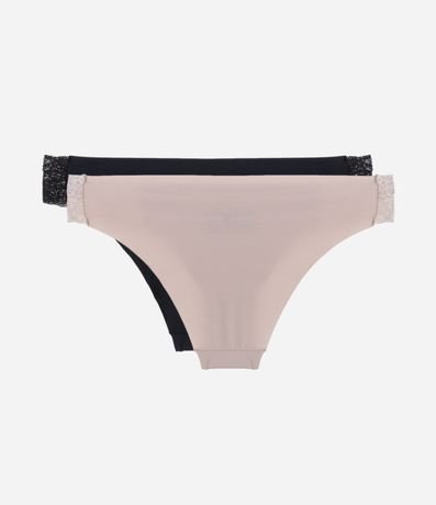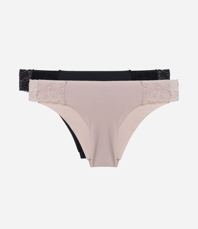 Kit com duas calcinhas de microfibra com detalhe lateral de renda.